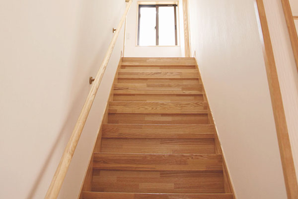 厚みのある木材を使用して独自の工法で組む階段は、上り下りする時にきしむ音がしません。